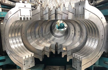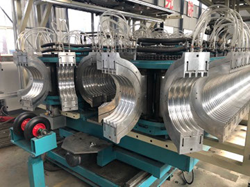 Экструзионная линия для производства двухслойных двустенных гофрированных труб включает в себя: