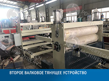 2 комплектами тянущих устройств с регулировкой скорости(м/мин) . Первое тянущее устройство представляет собой 5 групп по 2 валка, прижим осуществляется пневматическим способом. Второе тянущее устройство представляет собой 2 группы по 2 валка, прижим осуществляется пневматическим способом.