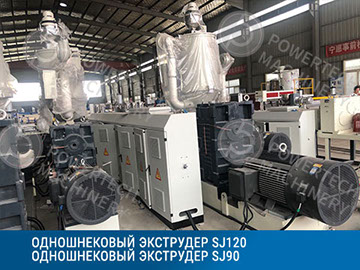 Два одношнековый экструдера серии SJ. Одношнековый экструдер SJ120 используется для экструзии внутреннего слоя из вторичного полипропилена с мелом (CaCo3). Одношнековый экструдер SJ90 используется для внешнего слоя опалубки первичным полипропиленом, для более качественного и гладкого слоя.