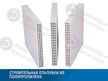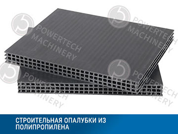Экструзионная линия для производства полой строительной опалубки из полипропилена. Опалубка из полипропилена изготавливается из пластика путем экструдирования через экструдер.