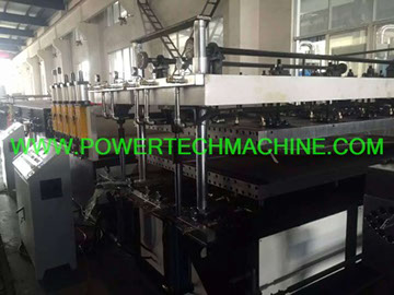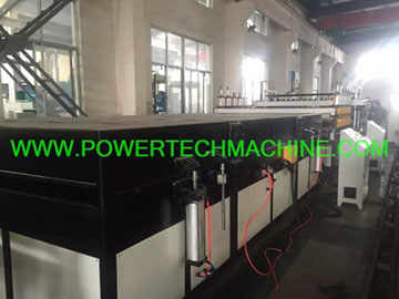 Вакуумным калибратором, который служит для калибровки формы листа. Калибратор оснащен водяным и вакуумным контуром, необходимым набором вакуумных и водяных насосов, системой регулировки по X (горизонту) и по Y (высоте).