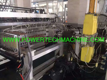 Экструзионная линия для производства сотового листа из поликарбоната. Лист хорошо подходит для теплиц, козырьков, навесов, заборов, перегородок и других сооружений.