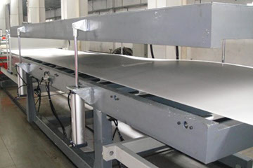 Вакуумным калибратором, который служит для калибровки формы листа. Калибратор оснащен водяным и вакуумным контуром, необходимым набором вакуумных и водяных насосов, системой регулировки по X (горизонту) и по Y (высоте).