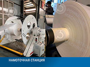 Намоточное устройство с электрическим приводом и пневматическим валом для намотки листа в бобину.
