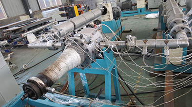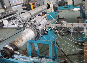 Экструзионная линия для производства двухслойных двустенных гофрированных труб включает в себя: